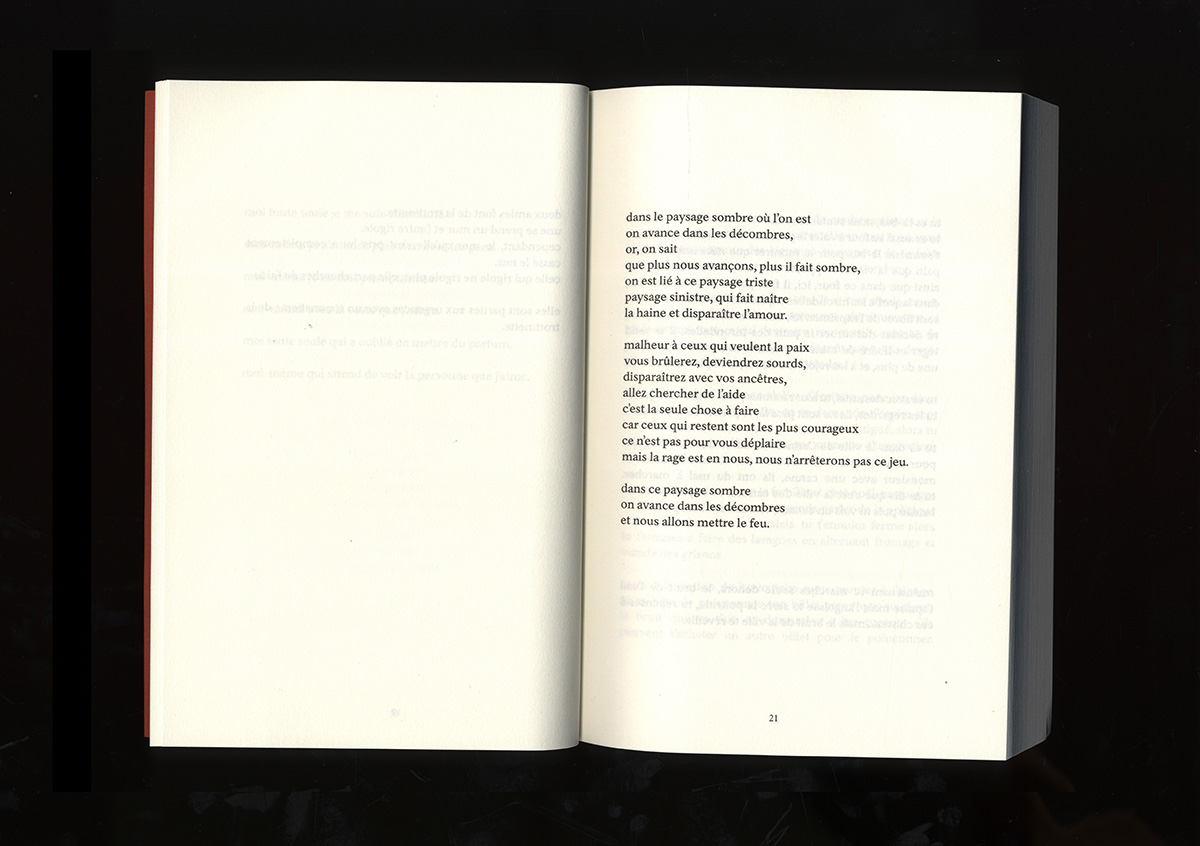 Ce manuscrit a été retrouvé à l’avant d’une Renault Nevada, en Camargue, aux derniers jours de l’an 2019, le moteur encore chaud. Deux typographies ont été utilisées pour retranscrire les prises de paroles qui s’alternent : silka (Lucie), calendas plus (Robin).